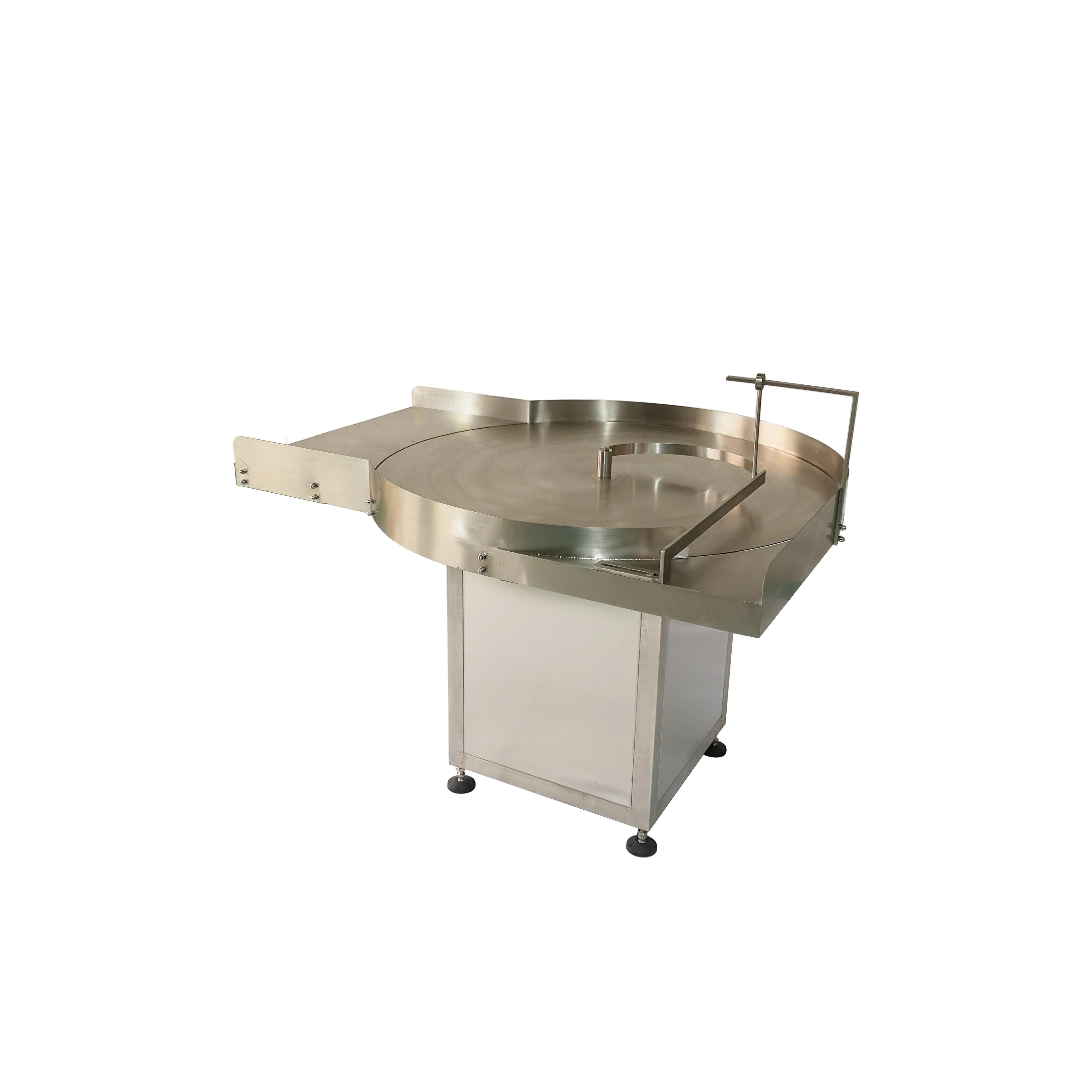 The Unscrambler is manually placed in the bottle round turntable, the turntable rotating conveyor belt will be transferred to the bottle has continued into the filling machine for filling.